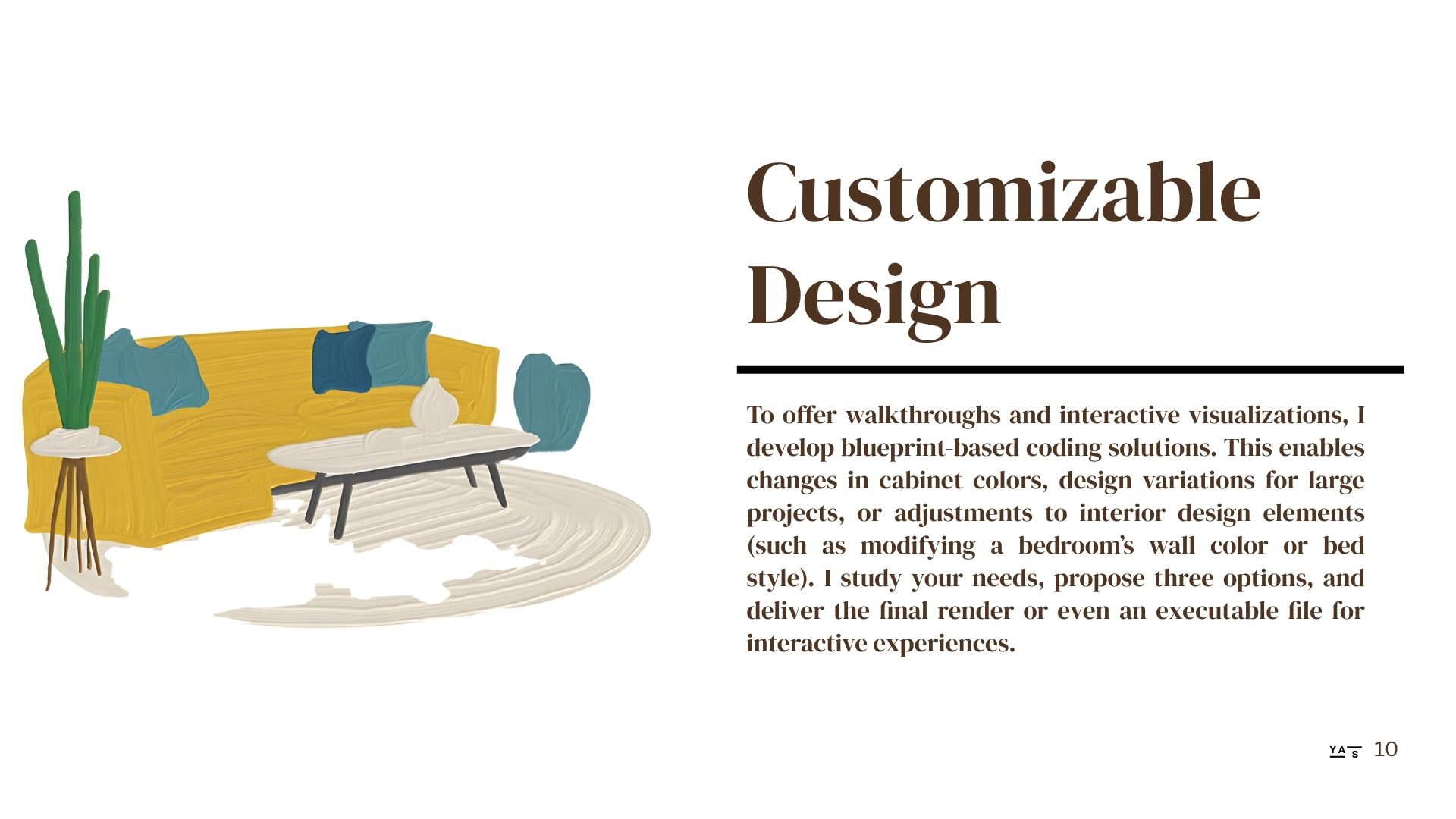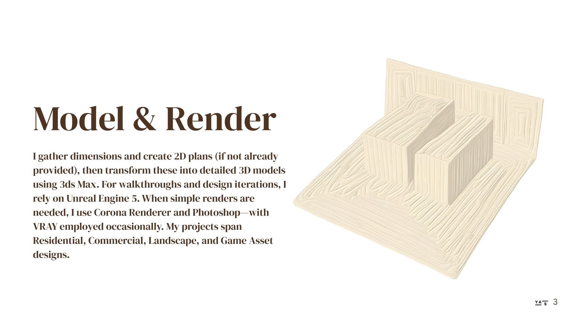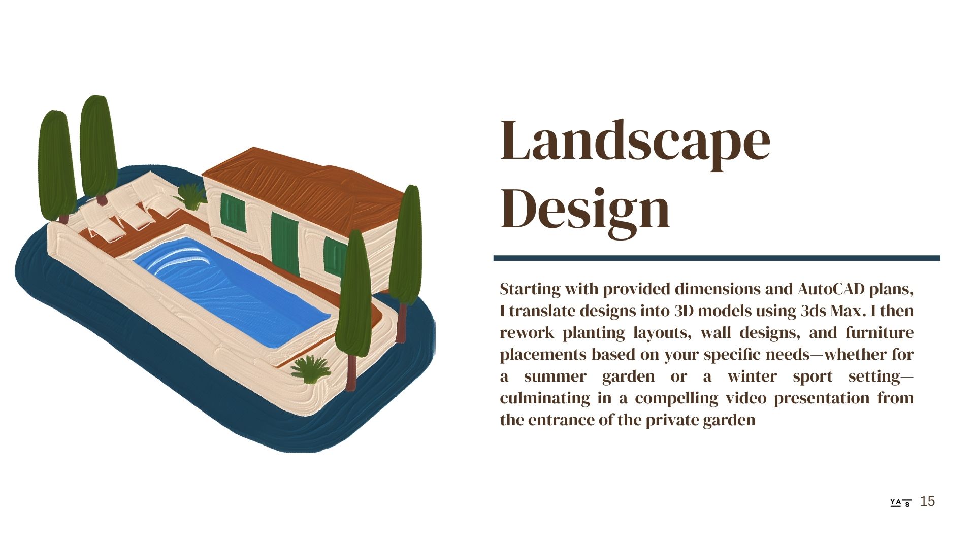 Specialized in architecture and visualization, will help you with interior design, landscape design, drafting plans and making walkthroughs before building.